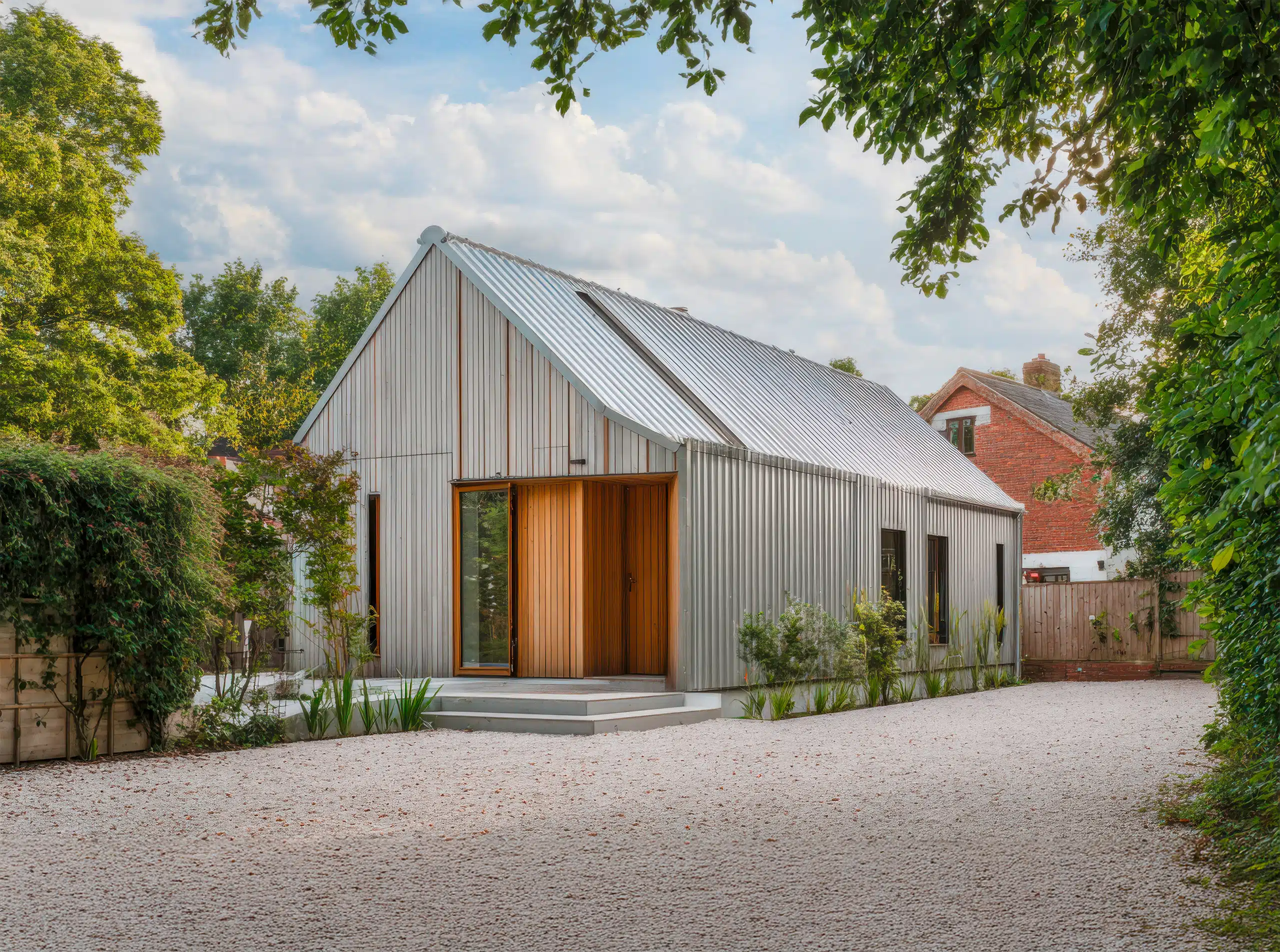 Außenverkleidungen können dabei aus Brettern, Profilbrettern, Schindeln oder Fassadenelementen aus plattenförmigen Holzwerkstoffen bestehen.