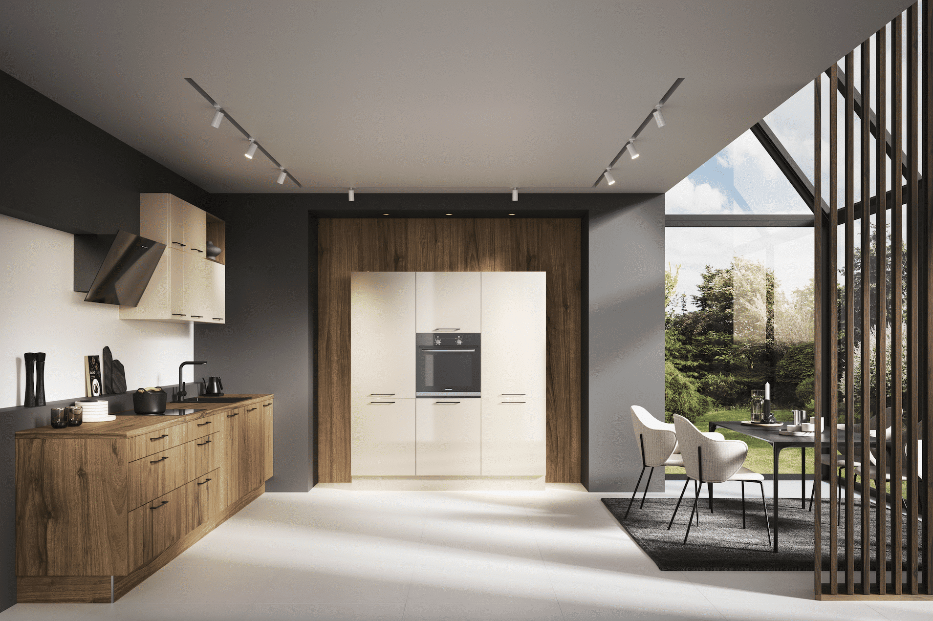 Holz wird aktuell aber selten solo, sondern meist in Kombination mit hellen, lackierten Flächen verwendet und sowohl in der Art als auch im Beizton auf das Mobiliar des anschließenden Wohnraumes abgestimmt, sodass sich hier eine harmonische Einheit und eine ganzheitliche Wohnkultur bilden.