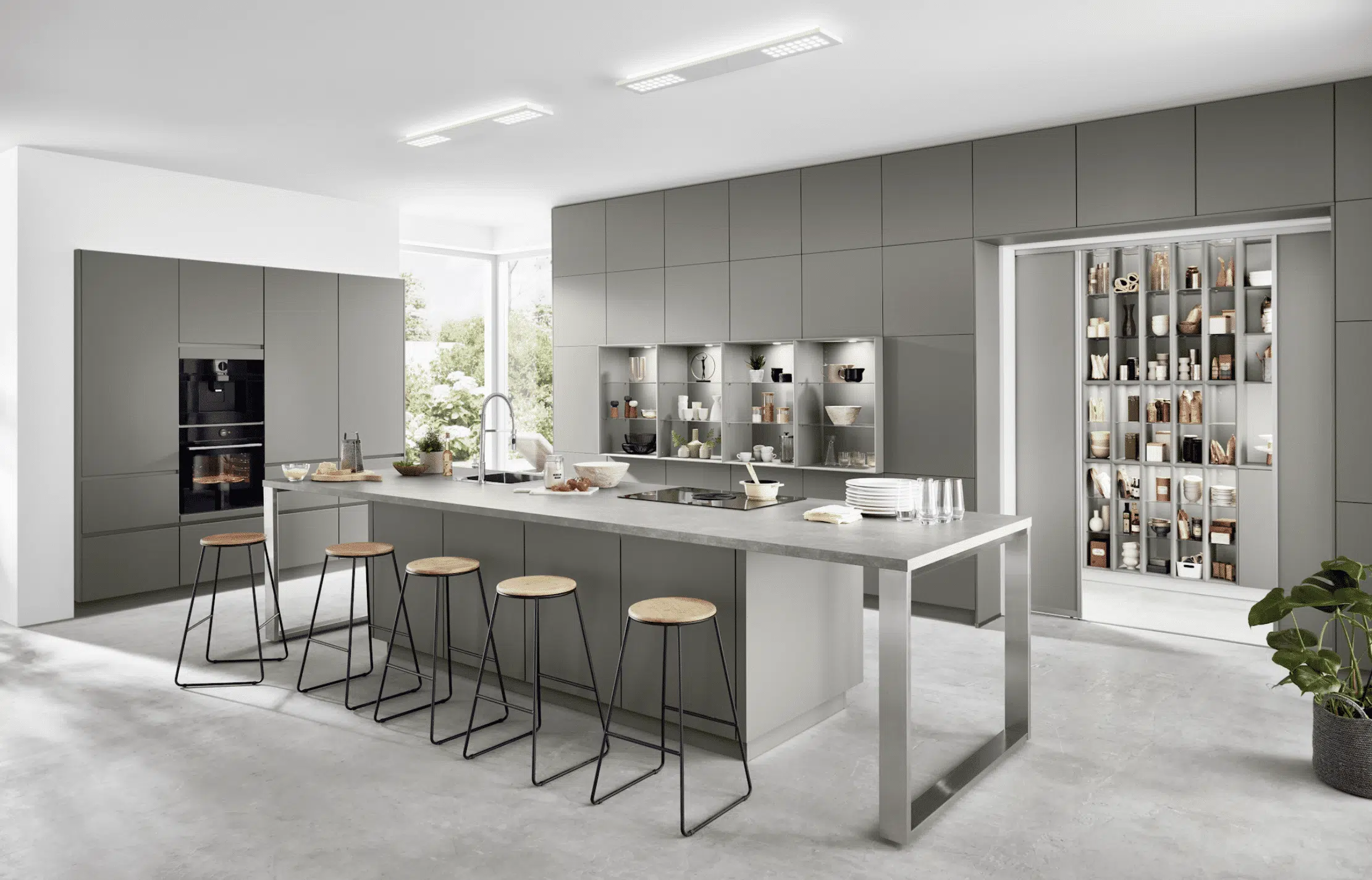 Dank griffloser Küchenschränke entsteht eine geschlossene Optik, welche von Designküchen-Liebhabern als stilvoll und ästhetisch empfunden wird.