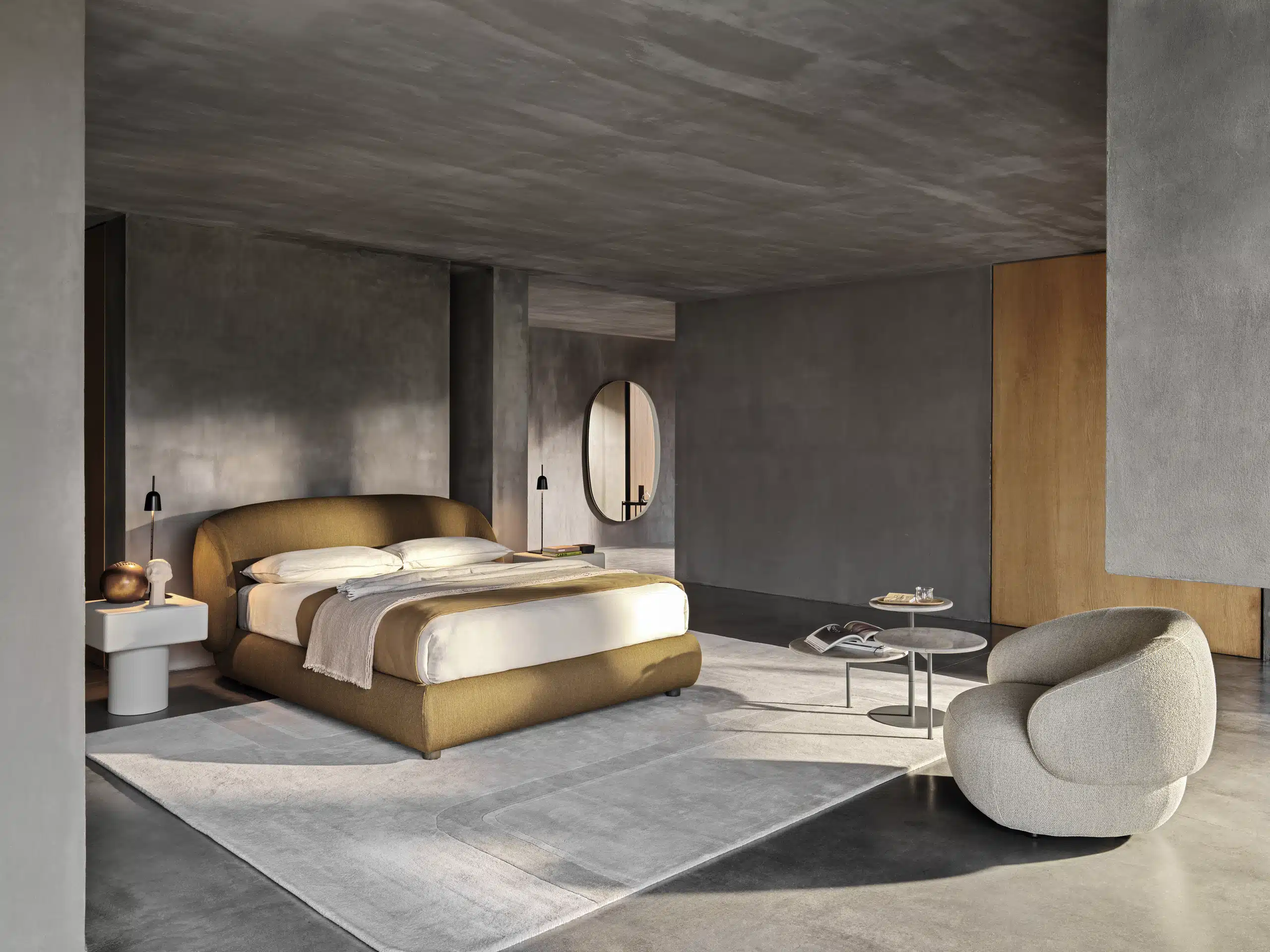 Zeitgemäße Schlafräume sind stattdessen von Einzelelementen geprägt, die auch zu Rückzug und Erholung einladen. Das Inventar präsentiert sich im Wechselspiel von Materialien und Farben.