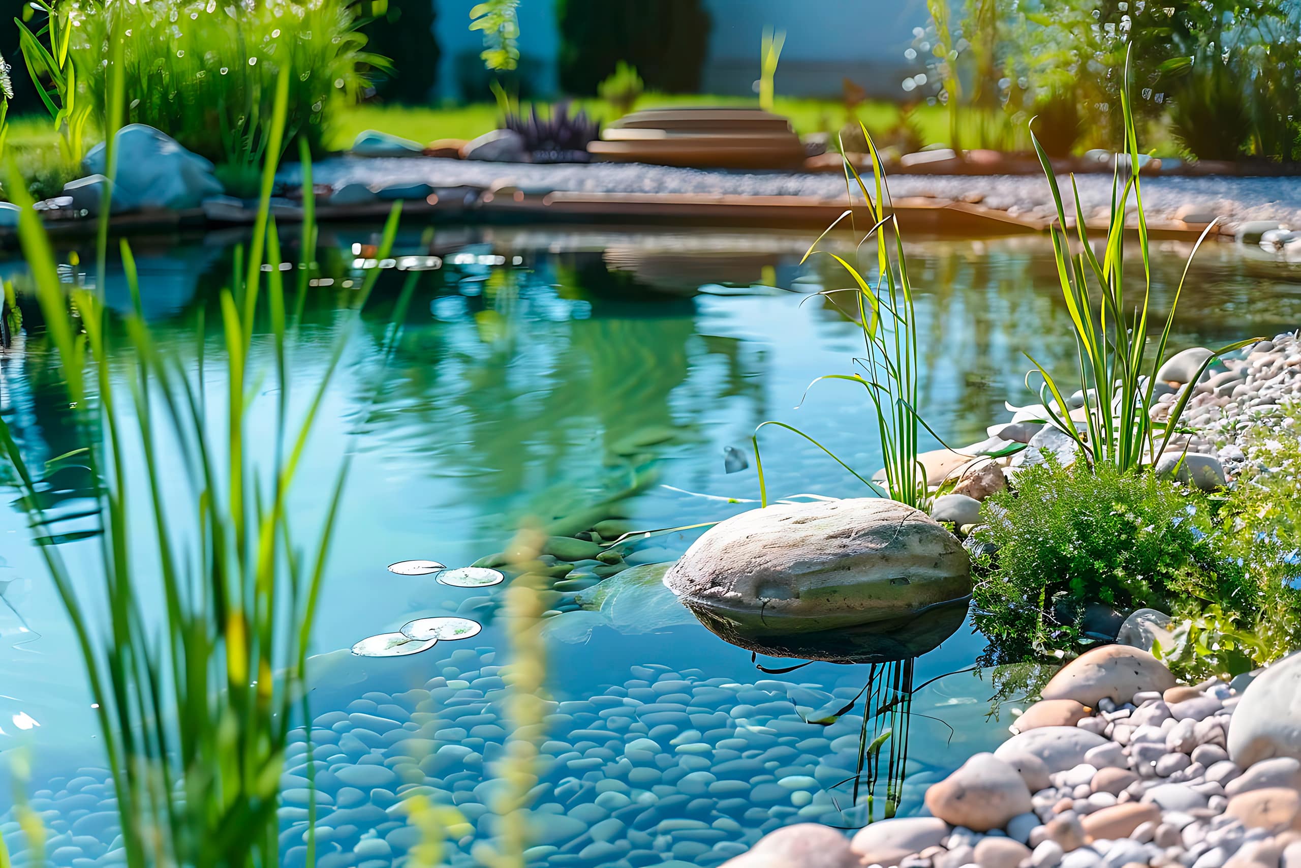 Die idyllische Badeoase im eigenen Garten sorgt für entspannte Auszeiten und Ruhe abseits des Badetrubels. Einfach Abtauchen aus dem Alltag mit Gräsern, Seerosen und viel beruhigendem Wasser.