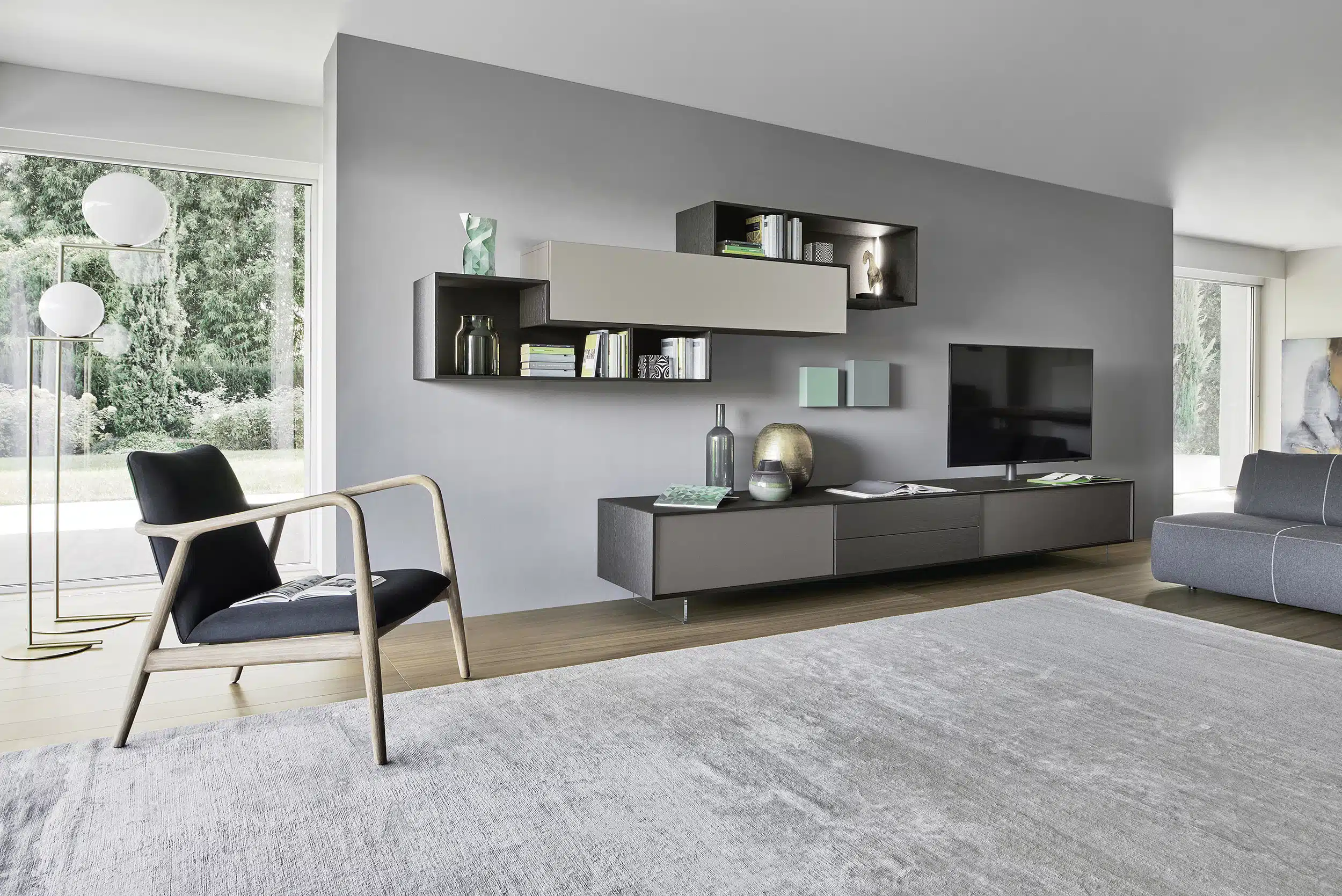 Sofas und Sitzgruppen haben im Laufe der letzten Jahre ihre Dominanz verloren. Sie werden tendenziell kleiner und leichter. Vorteil: So kann man die Elemente immer wieder flexibel umgruppieren und mit neuen Inszenierungen spielen. Auch der klassische Wandverbau hat ausgedient.