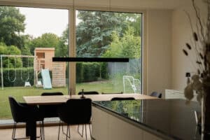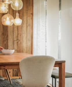 Das Hauptaugenmerk soll mit Hilfe der Beleuchtung auf den Tisch gelenkt werden. Daher sollte die Beleuchtung an die Länge des Tisches angepasst werden. Hierfür eignen sich besonders Pendelleuchten, da sich diese in der Höhe anpassen lassen. Mit einer Kombination mit einer indirekten Beleuchtung oder akzentuierten Spots wirkt das Esszimmer einladend und belebt.