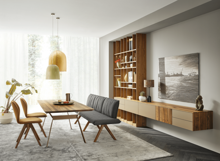 Die zentralen Einrichtungsgegenstände in einem Esszimmer sind natürlich ein großer Esstisch, gemütliche Stühle, möglicherweise in Kombination mit einer stylischen Sitzbank. Die Größe des Esstischs sollte an die Raumgröße angepasst sein. Natürlich soll auch die platznehmende Personenzahl bedacht werden. Weiters lässt sich das Esszimmer mit einer praktischen Vitrine oder einem formschönen Sideboard einrichten und mit einer stimmigen Beleuchtung perfekt in Szene setzen.