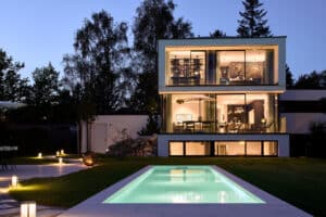 Eine derzeit sehr beliebte Bauweise von modernen Häusern besteht oftmals aus Beton, Glas und Stahl mit großen Fensterfronten oder Ganzglas-Systemen. Dabei ist ausreichend Raum und offenes Wohnen gefragt. Beliebt ist auch eine kreative Gartengestaltung samt Pool oder Schwimmteich. Eine nachhaltige Heiztechnik und eine intelligente Haustechnik via Smart Home runden das komfortable Wohnen ab. Auf der exclusive Bauen & Wohnen Website finde ich zahlreiche inspirierende Bilder und Fotos zum Thema Hausbau.