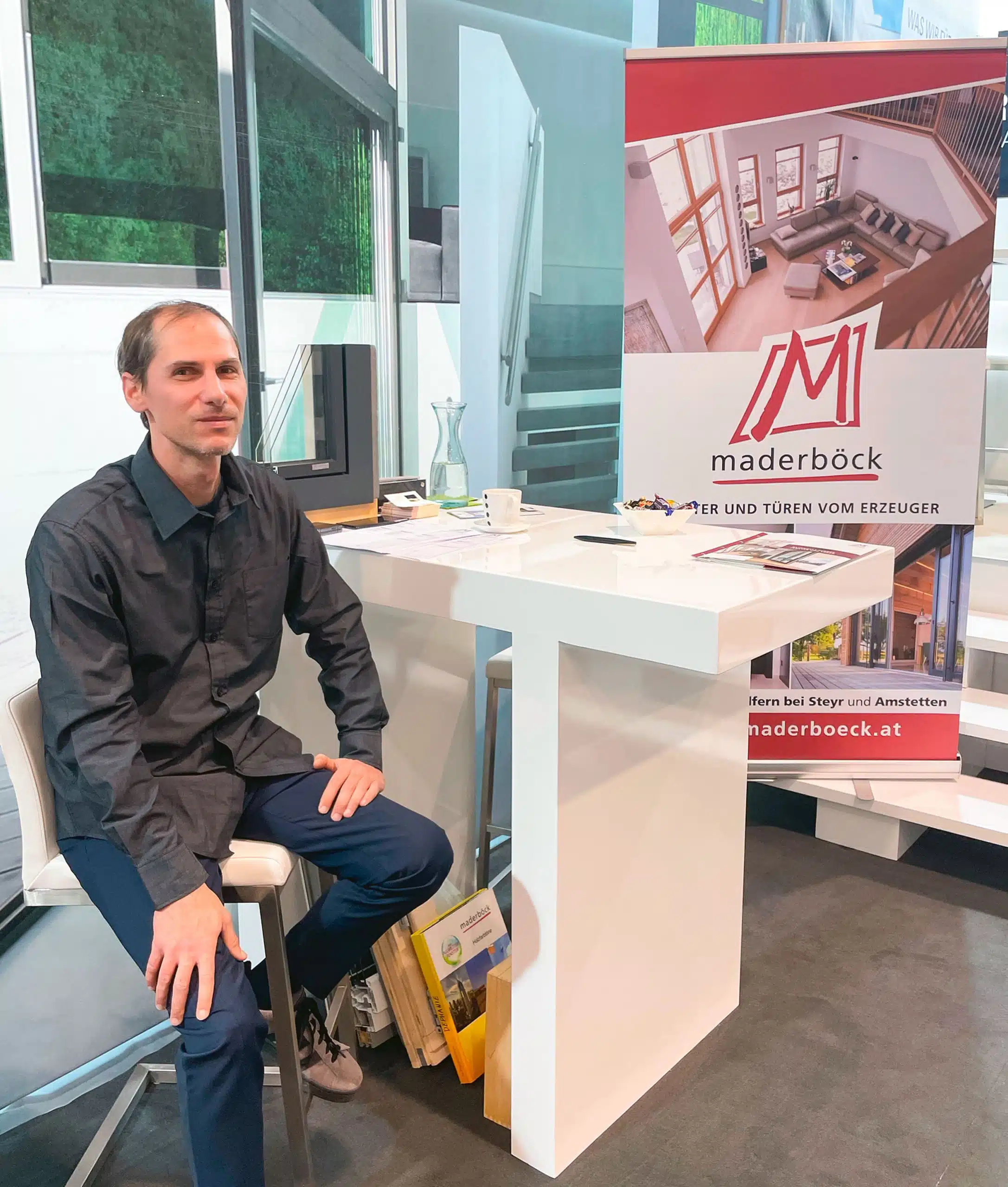 Unser Mitaussteller Maderböck schickte uns Florian Drabeck zur Unterstützung an unseren Messestand.