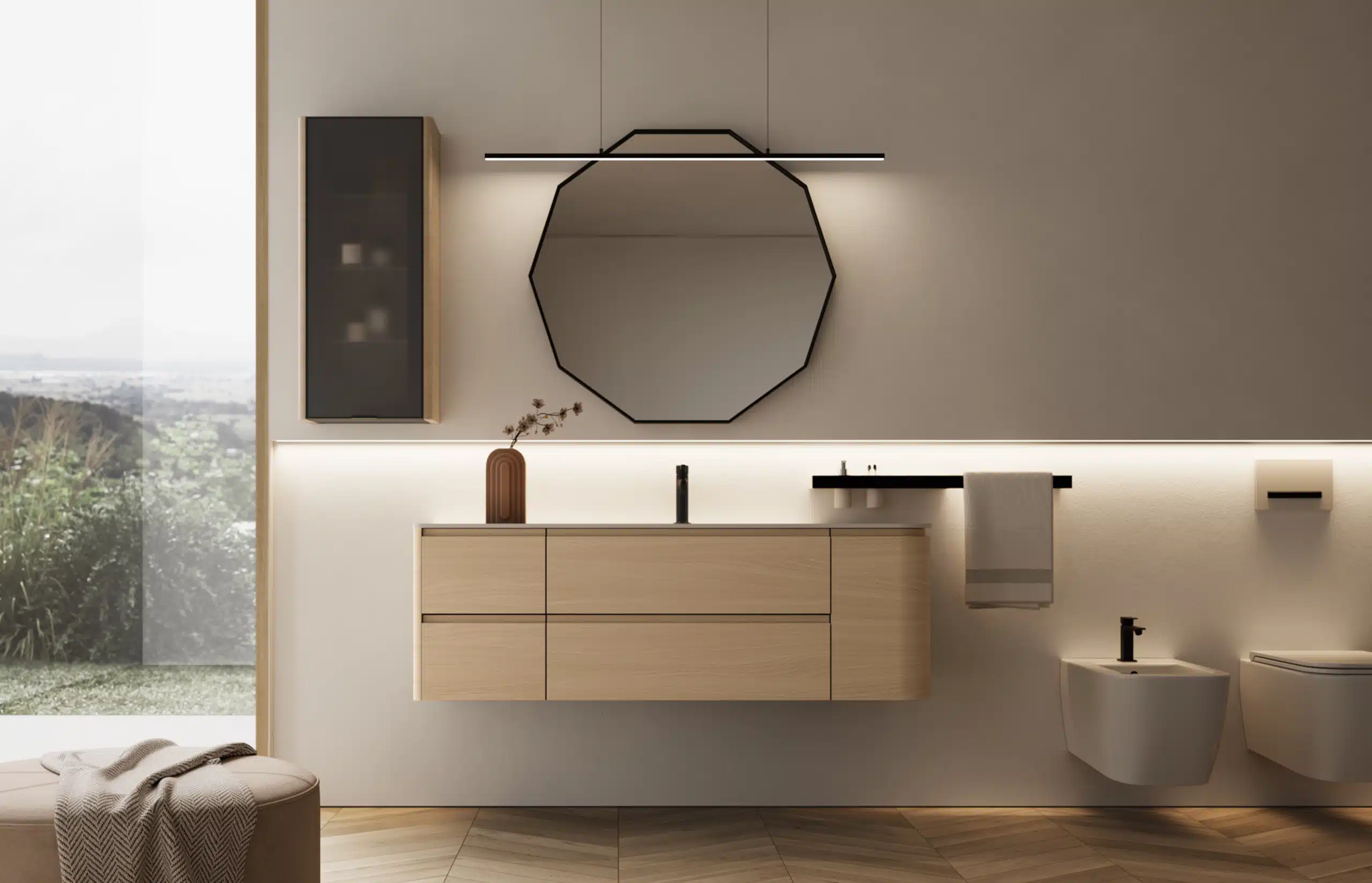 Jedes Einrichtungsprojekt für das Badezimmer wird vollständig durchdacht, bis ins kleinste Detail geplant und in Italien hergestellt, ohne jemals Kompromisse in Bezug auf Ästhetik, Funktionalität, Qualität und Ergonomie einzugehen, mit dem Ziel, das Badezimmer in eine elegante Oase der Entspannung zu verwandeln.