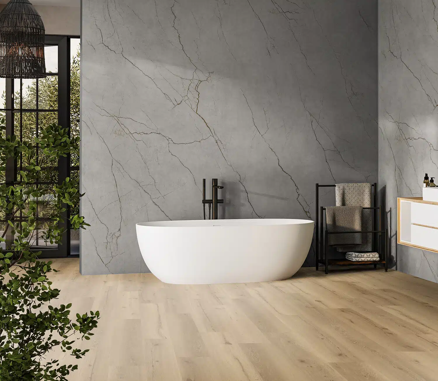 Für ausgewählte Dekore der LICO Hydro Wall Wandpaneele sind auch passende Hydro-Böden, im identischen Design, erhältlich. Wand- und Bodenflächen greifen dabei nahtlos ineinander und bilden eine harmonische Einheit.