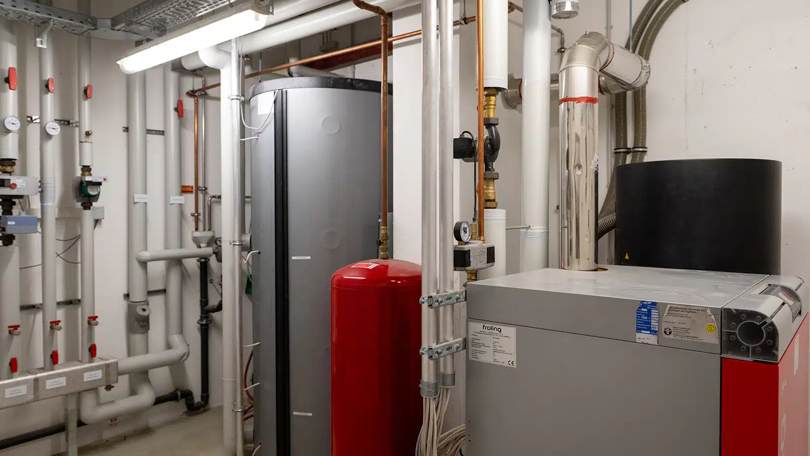 Ziel der Modernisierung war es, eine zentrale und zukunftsfähige Wärmeversorgung zu schaffen. Der vorhandene Pelletkessel sollte beide Gebäude versorgen, die PV-Anlage samt Stromspeicher eingebunden und das gesamte System sowohl für Laien einfach bedienbar als auch für den Haustechniker flexibel steuerbar sein.