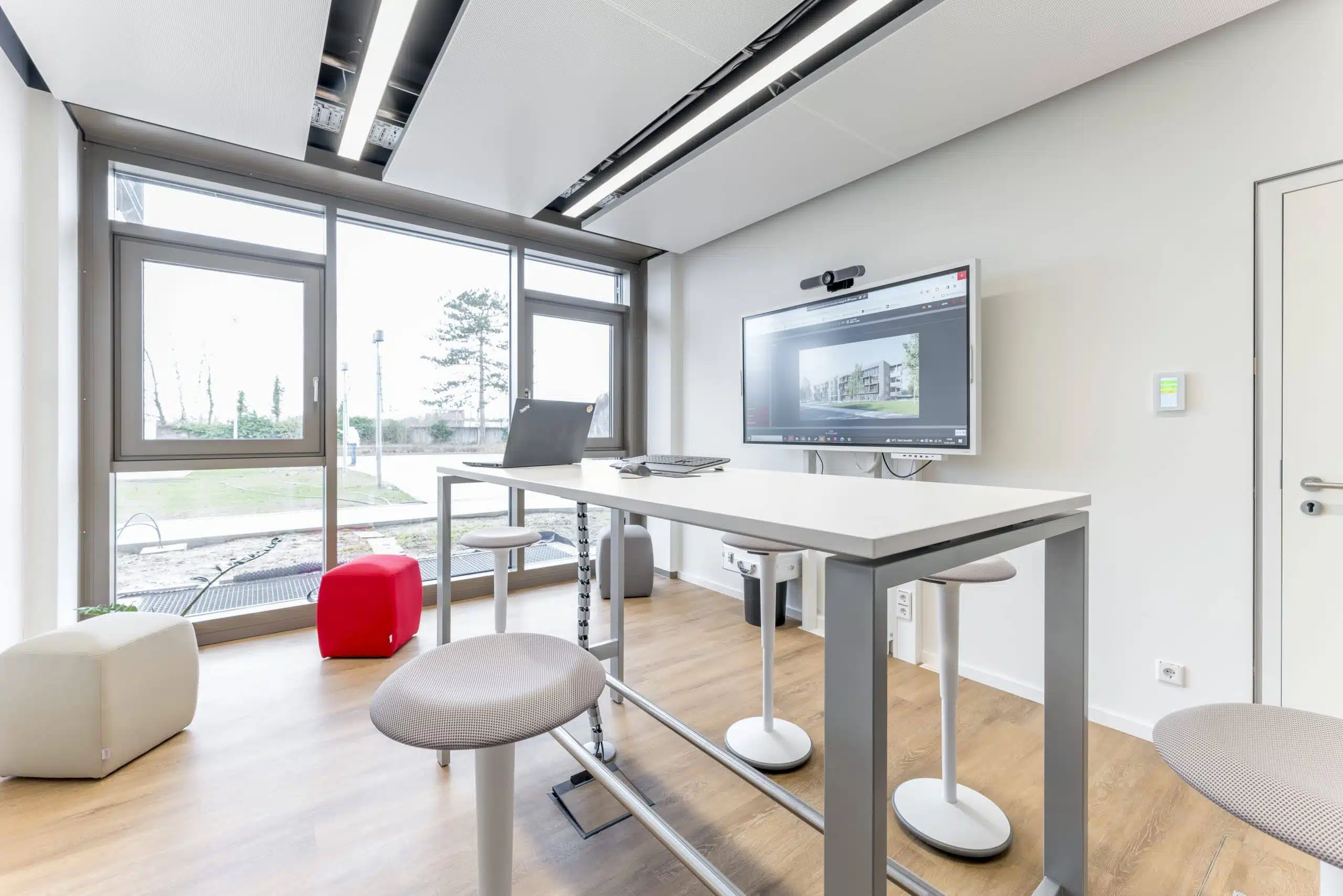 Die NEXTEC Holding hat in Karlstein ein nahezu CO2-neutrales Bürogebäude mit modernster Haustechnik erstellt. Bis zu 500 Menschen können dort arbeiten. Bei der Raumautomation setzt das Unternehmen auf intelligente Sensorik und das Premium-Raumbediengerät thanos EVO.