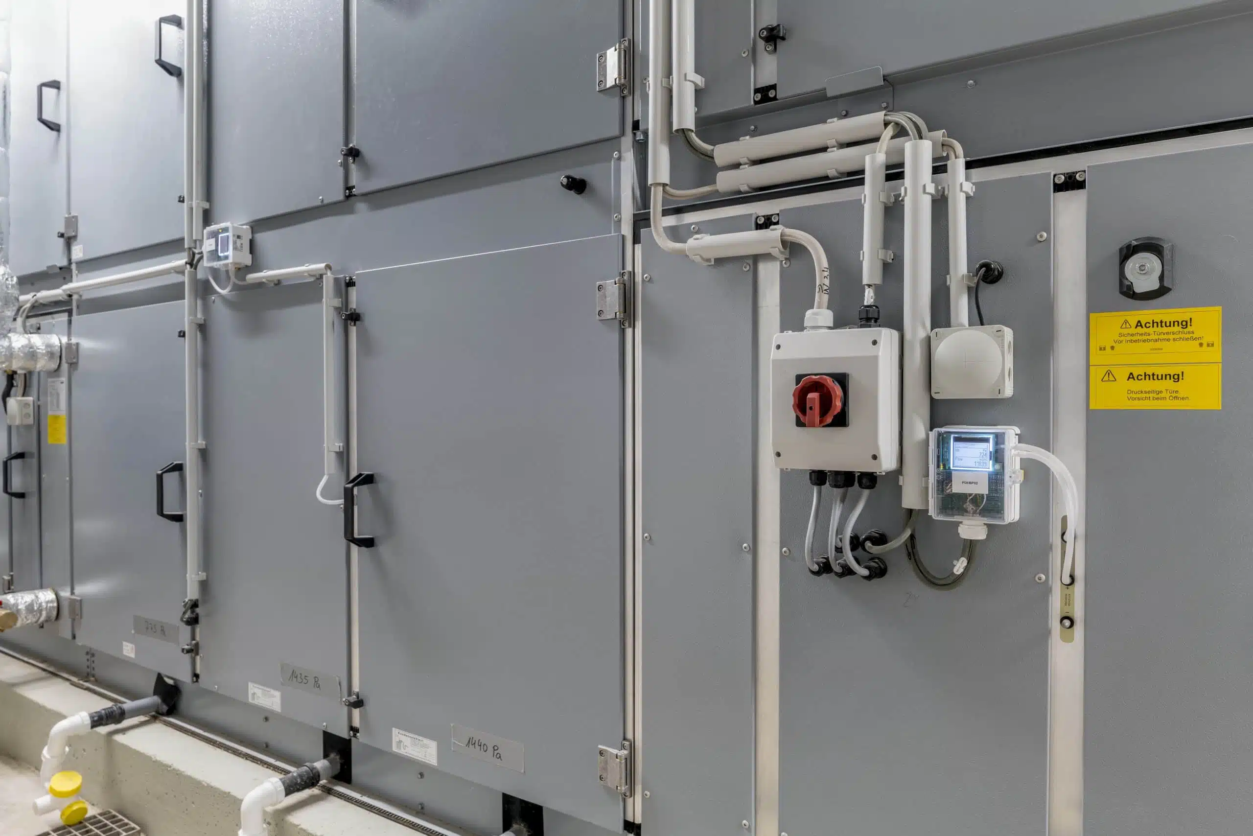 Die Gebäudeautomation fokussiert sich auf einen wirtschaftlichen, energieeffizienten Betrieb und das Zusammenspiel aller Komponenten. Die Raumbediengeräte ermöglichen die Steuerung verschiedener Gewerke mit einer einzigen Lösung und unterstützen eine priorisierte Behandlung ausgewählter Parameter. Ein BUS-System sorgt für Bedienkomfort und Nutzungsfreundlichkeit.