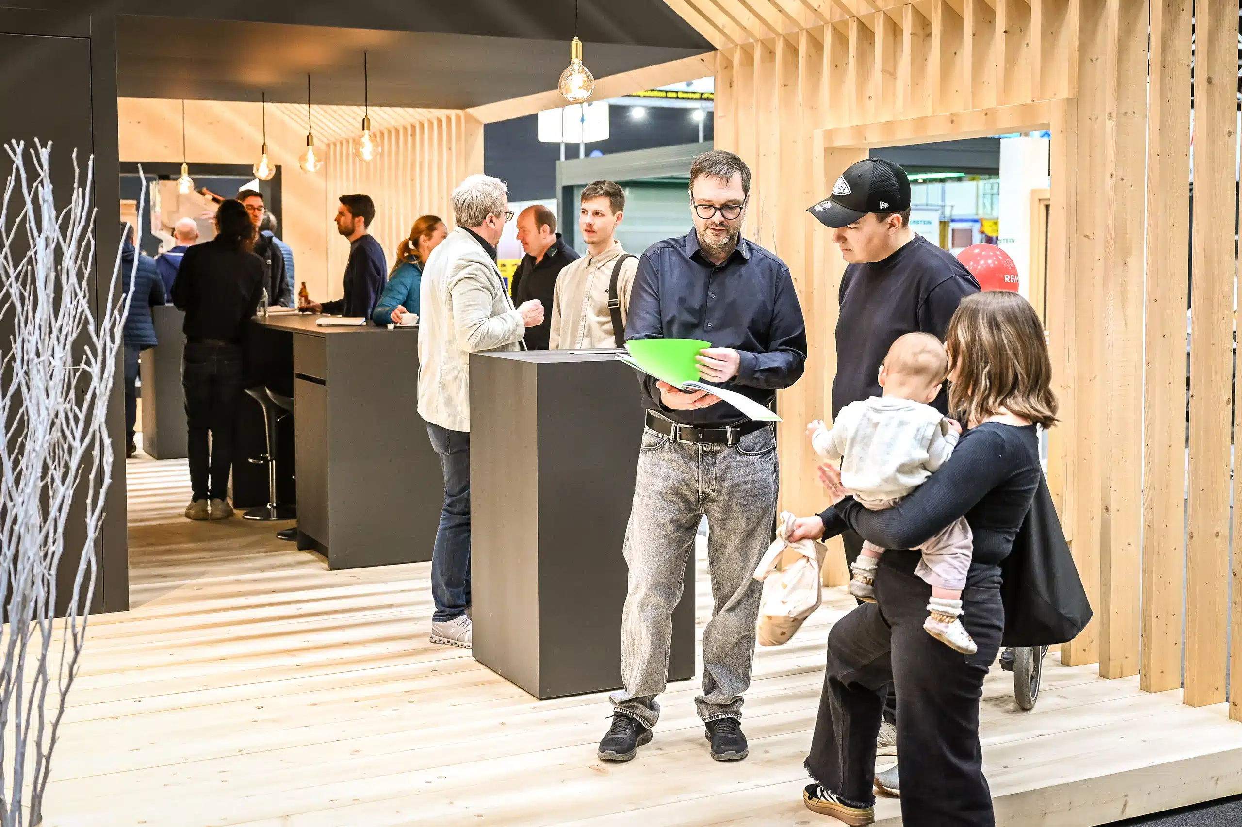 BesucherInnen vergleichen Materiallösungen, Sanierungskonzepte, Photovoltaikanlagen mit Speicher, Smart-Home-Anwendungen sowie Finanzierungsmodelle und aktuelle Immobilien.