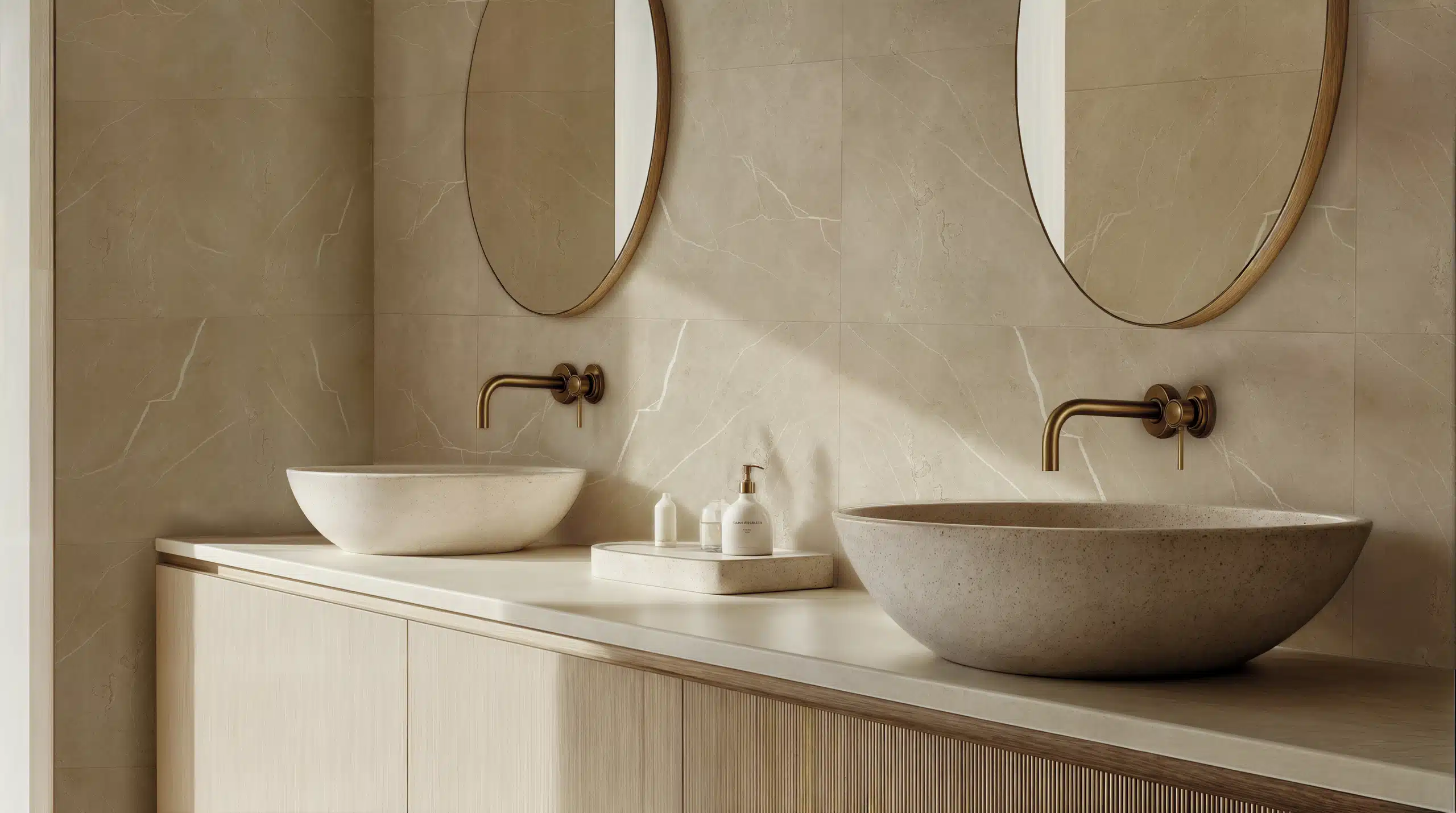 Die klassischen Fliesen werden durch XL- und XXL Panele speziell für den Duschbereich ergänzt.